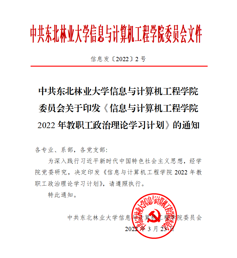 中共U8国际信息与计算机工程公司委员会关于印发《信息与计算机工程公司2022年教职工政治理论学习计划》的通知