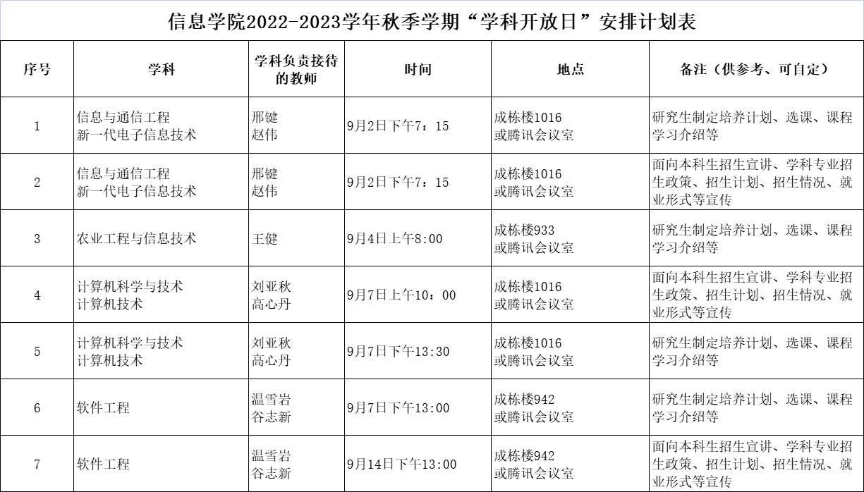 信息与计算机工程公司“学科开放日”安排计划表