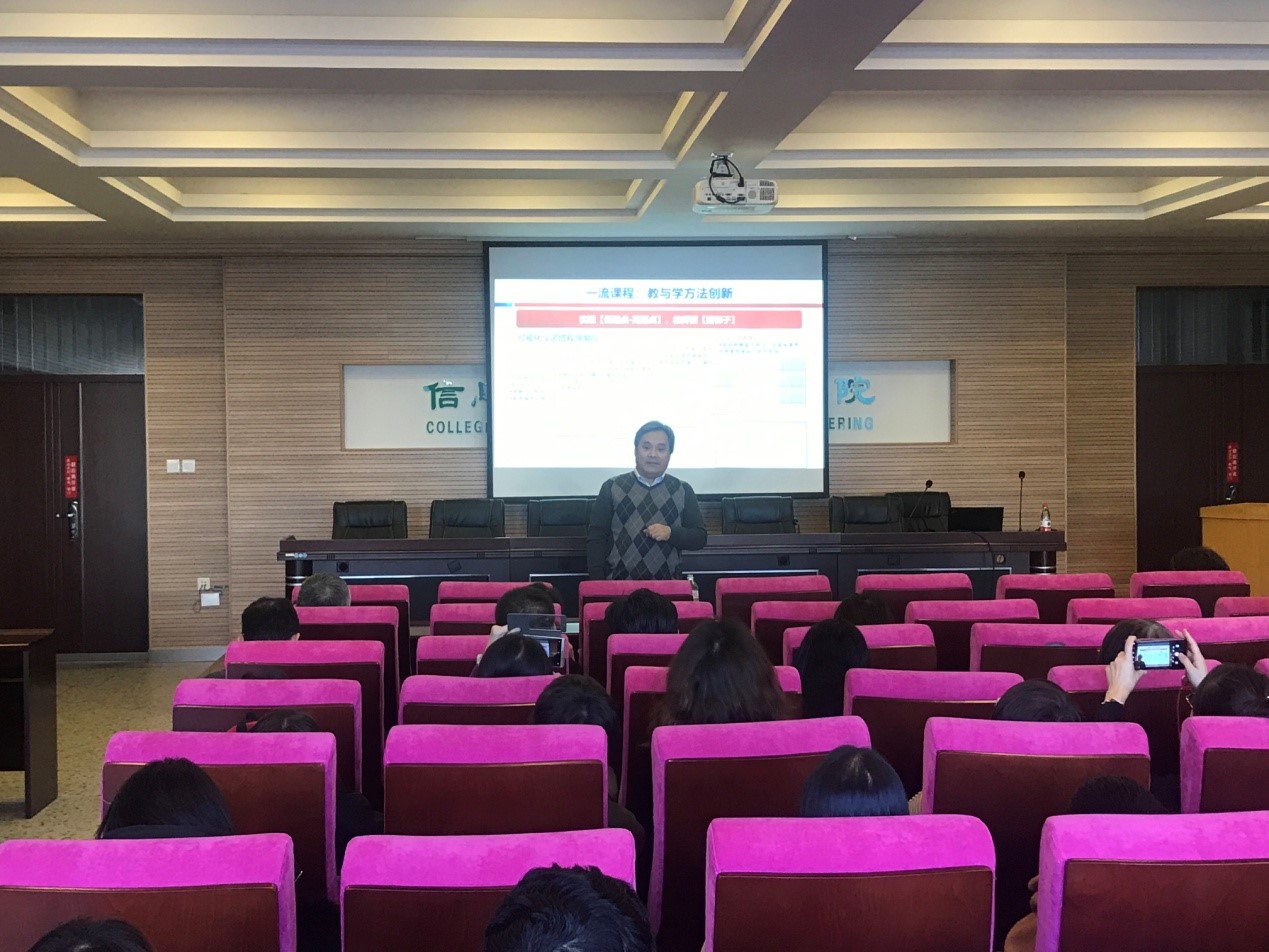 应U8国际信息与计算机工程公司邀请,哈尔滨工业大学计算机公司教授、博士生导师、教学委员会主任、哈尔滨工业大学MOOC推进工作办公室主任、黑龙江省教学名师战德臣教授于2019年11月25日下午13:40在成栋楼1016学术报告厅做了题为“一流课程双万计划:理解与建议”的学术报告。该报告会由信息公司副经理李丹主持,全院教师积极参加和聆听了本次学术报告。报告会上战德臣教授对如何理解一流课程双万计划,什么是金课,怎样打造金课,结合自身多年从事慕课建设与应用的经验,从课程内容创新、教与学方法创新两个方面介绍了金课的建设方法。进一步解析了一流课程双万计划的精神和实质,阐述了关于一流课程标准与评价方面的认识,给出了迎评一流课程的建议。战教授结合大量自身教学工作经历,理性睿智、生动幽默、深入浅出细致讲述,让教师们获益匪浅,同时战德臣教授幽默儒雅的学者风范和严谨的科学态度也给大家留下深刻的印象。