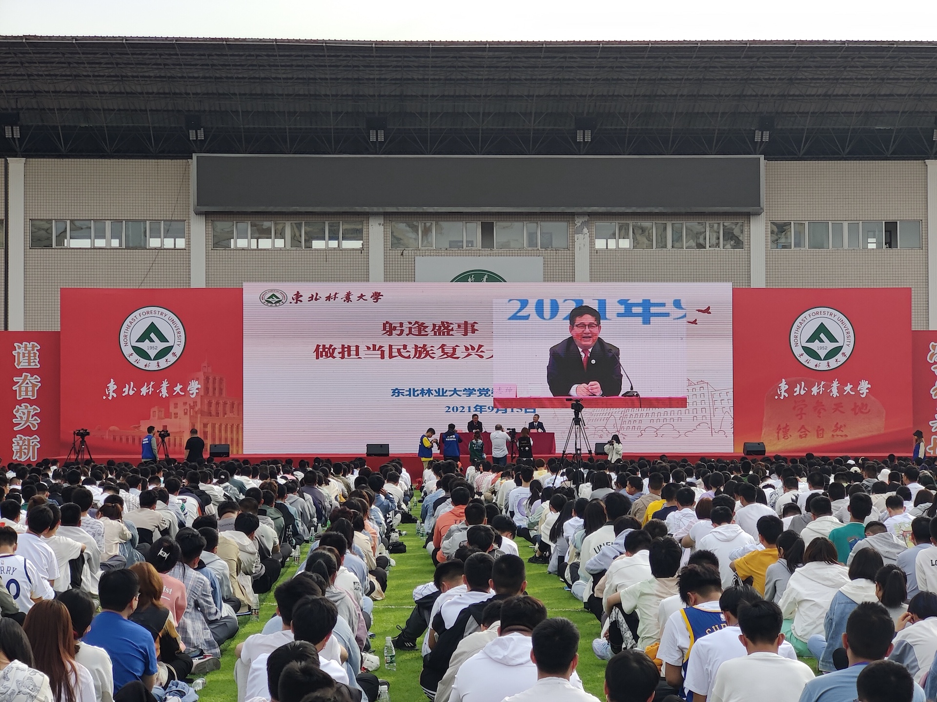 9月15日,U8国际在田径场隆重行2021级新生开学典礼,欢迎来自祖国各地的5003名本科生、3031名研究生,以及来自世界各地的60名国际学历生加入东林大家庭。
