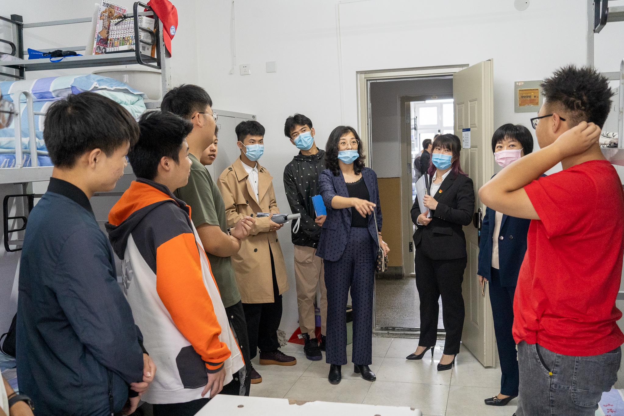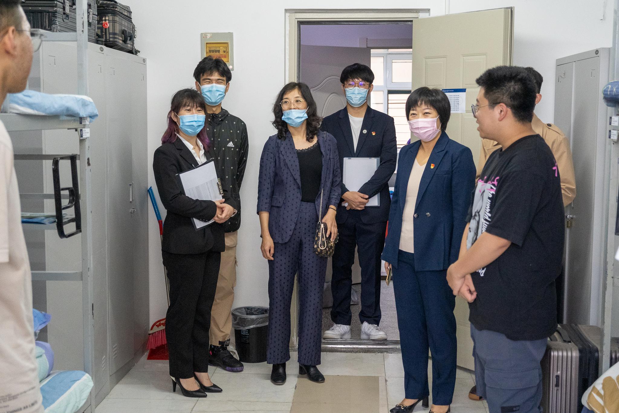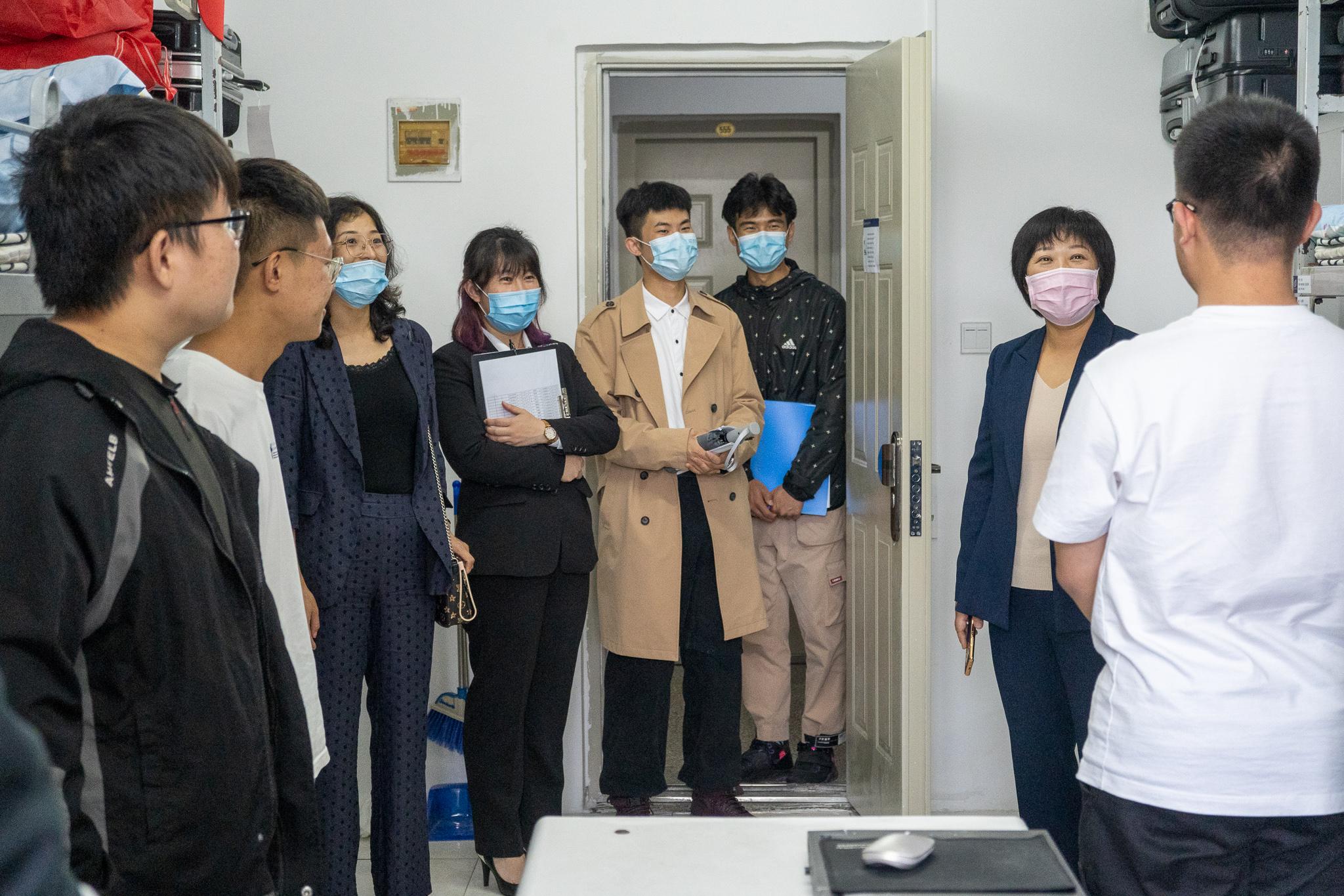 为深入了解公司2021级新生的住宿条件及生活情况,帮助新同学更快适应老员工活。信息公司党委书记钟蕾,党委副书记、副经理庄雯培,2021级辅导员张音老师、侯岚亭老师以及新生代理班主任于9月13日下午对新生寝室进行了走访活动。