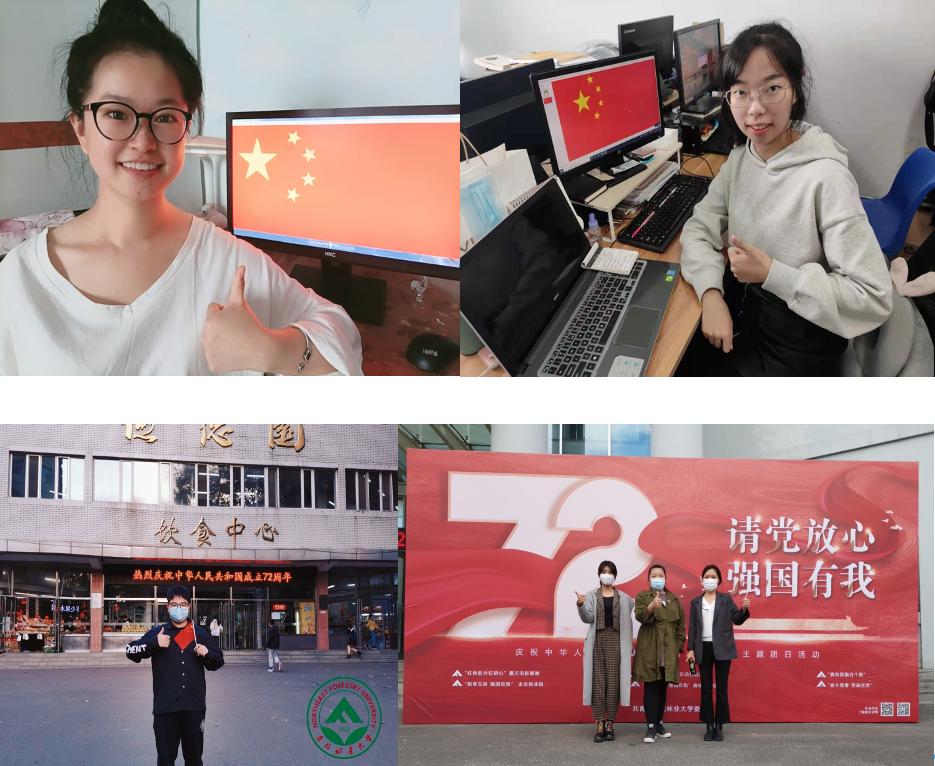 员工们洋溢着笑容与国旗合影,或是与国旗同框合影,或是在校园内与写有“热烈庆祝中华人民共和国成立72周年”内容的电子大屏合照,为祖国点赞。此项活动共收到摄影作品共计12份。