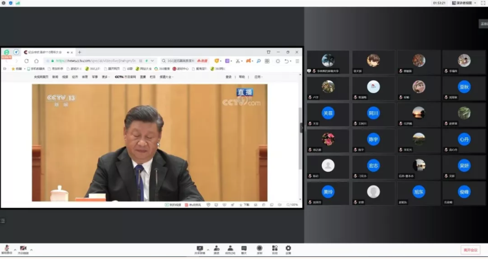 计算机科学与技术系党支部组织专业全体教师通过腾讯会议以线上方式集体收看辛亥革命110周年纪念大会。通过观看,专业教师们深深感受到辛亥革命的胜利是来之不易的,是当时的有志青年抛家舍业,抛头颅洒热血,以牺牲自我的奉献精神换来。110年来,一代又一代的有志青年,将个人的命运融入民族独立、人民解放、改革开发、国家强盛的滚滚洪流中,用青春和热血书写了壮丽的历史篇章。作为新时代的教师,应该更加紧密地团结在以习近平同志为核心的党中央周围,全面贯彻立德树人根本任务,工作上踏踏实实、脚踏实地,业务上孜孜以求、精益求精,为社会主义现代化建设培育人、育好人。