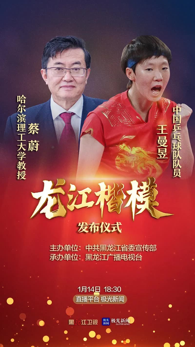 为了发挥先进典型示范引领作用,激励全省党员干部群众深入践行社会主义核心价值观,振奋精神、锐意进取、勇毅前行,为龙江振兴发展凝聚磅礴力量,中共黑龙江省委宣传部决定,授予中国乒乓球队黑龙江籍运动员、奥运冠军王曼昱,哈尔滨理工大学教授、博士生导师蔡蔚“龙江楷模”称号。省委常委、宣传部部长贾玉梅出席并为“龙江楷模”颁奖。