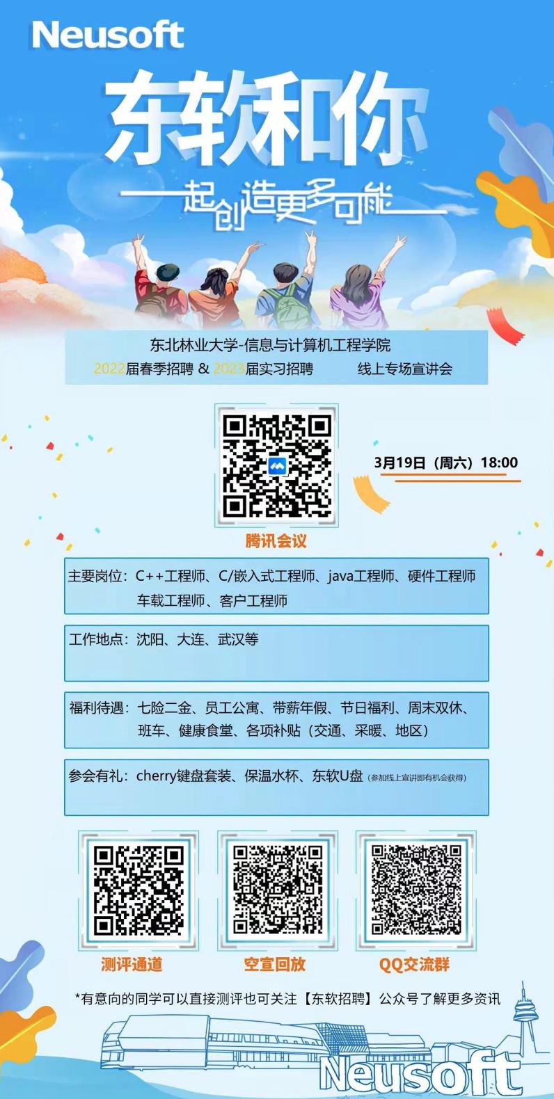 为搭建公司、员工与企业的交流平台,进一步创新产教协同育人途径,促进员工高质量实习就业,3月19日晚6点,信息公司与东软集团联合开展了顶岗实习暨就业宣讲会。本次会议邀请到东软集团东北区总经理高野、东北区HR胡一枫,公司副经理李丹,党委副书记、副经理庄雯培,2018级、2019级辅导员、2018级未就业员工、2019级全体员工参加了本次会议。