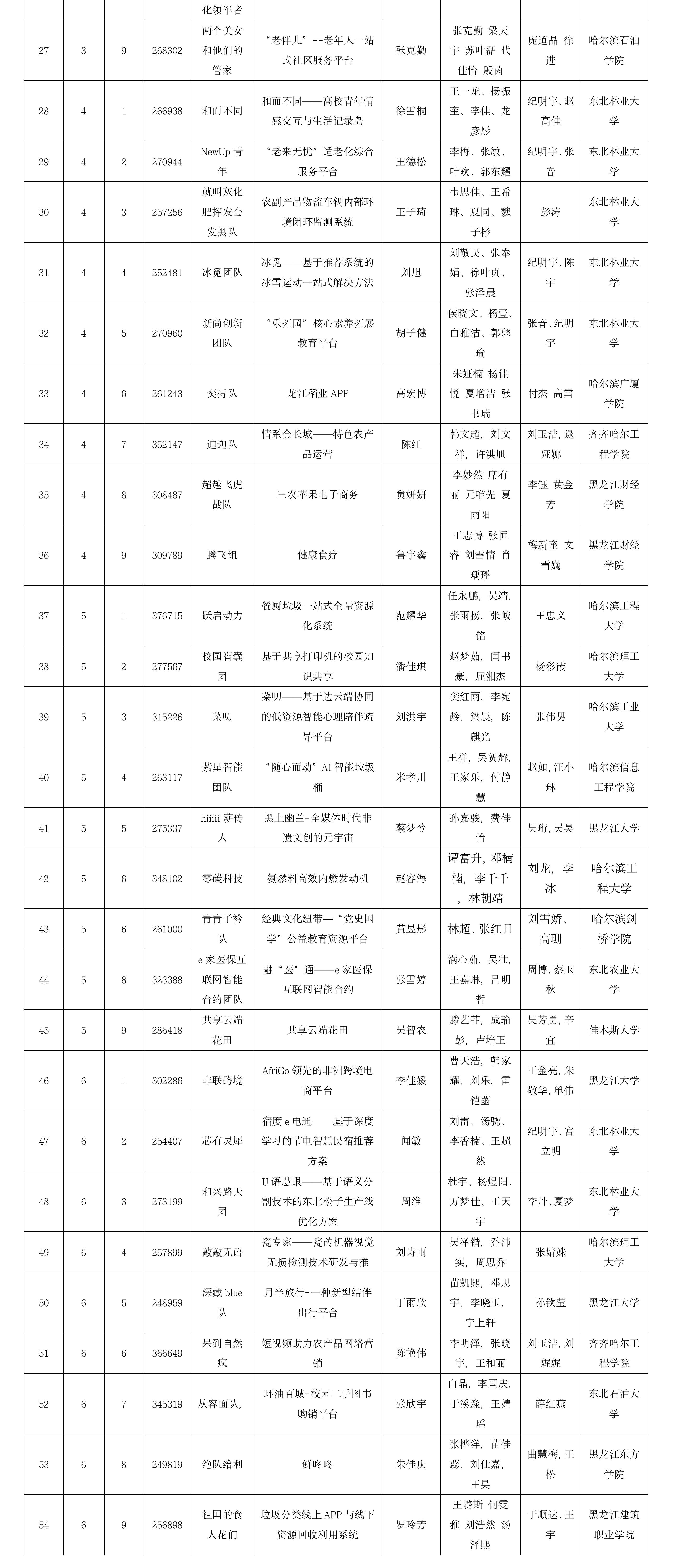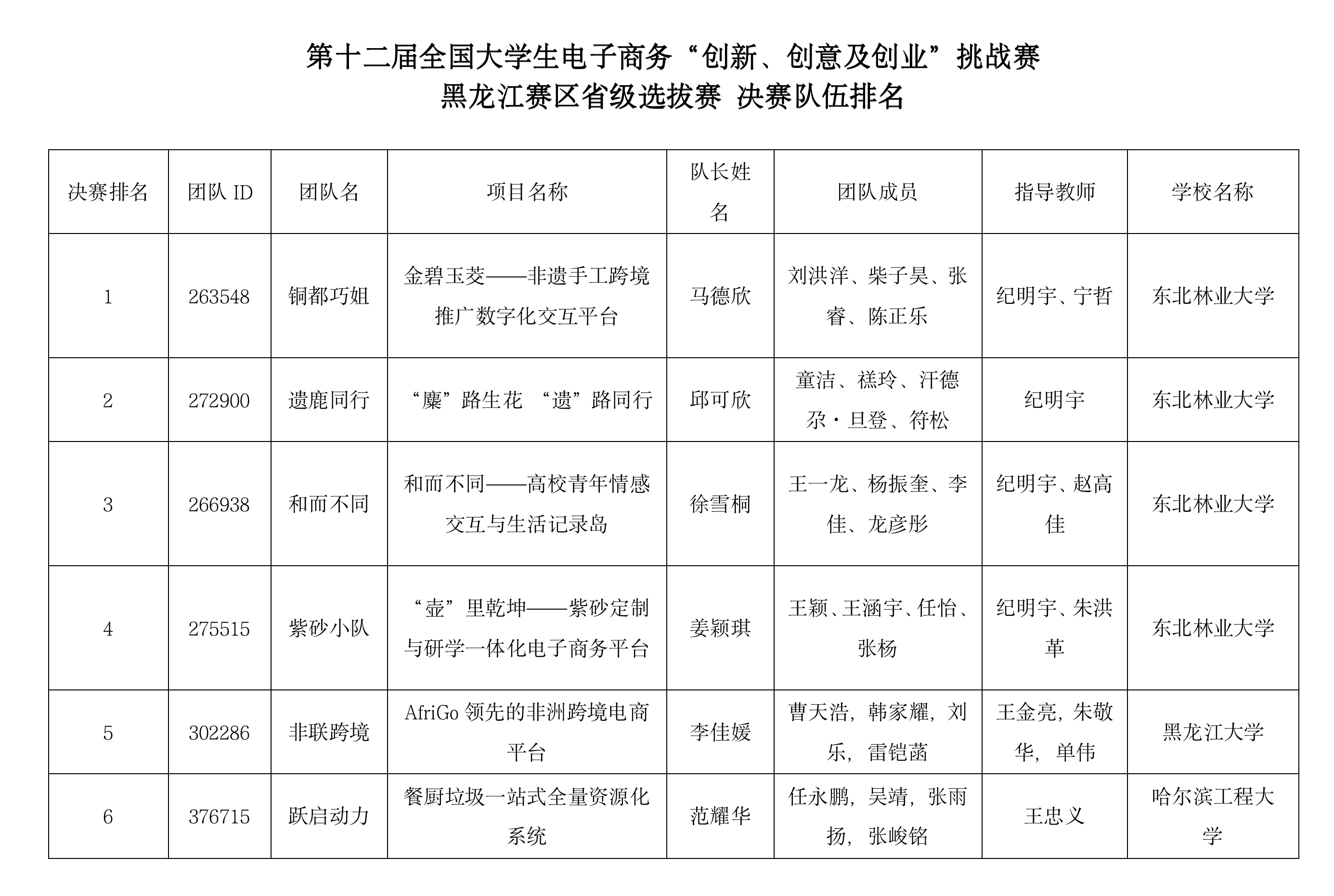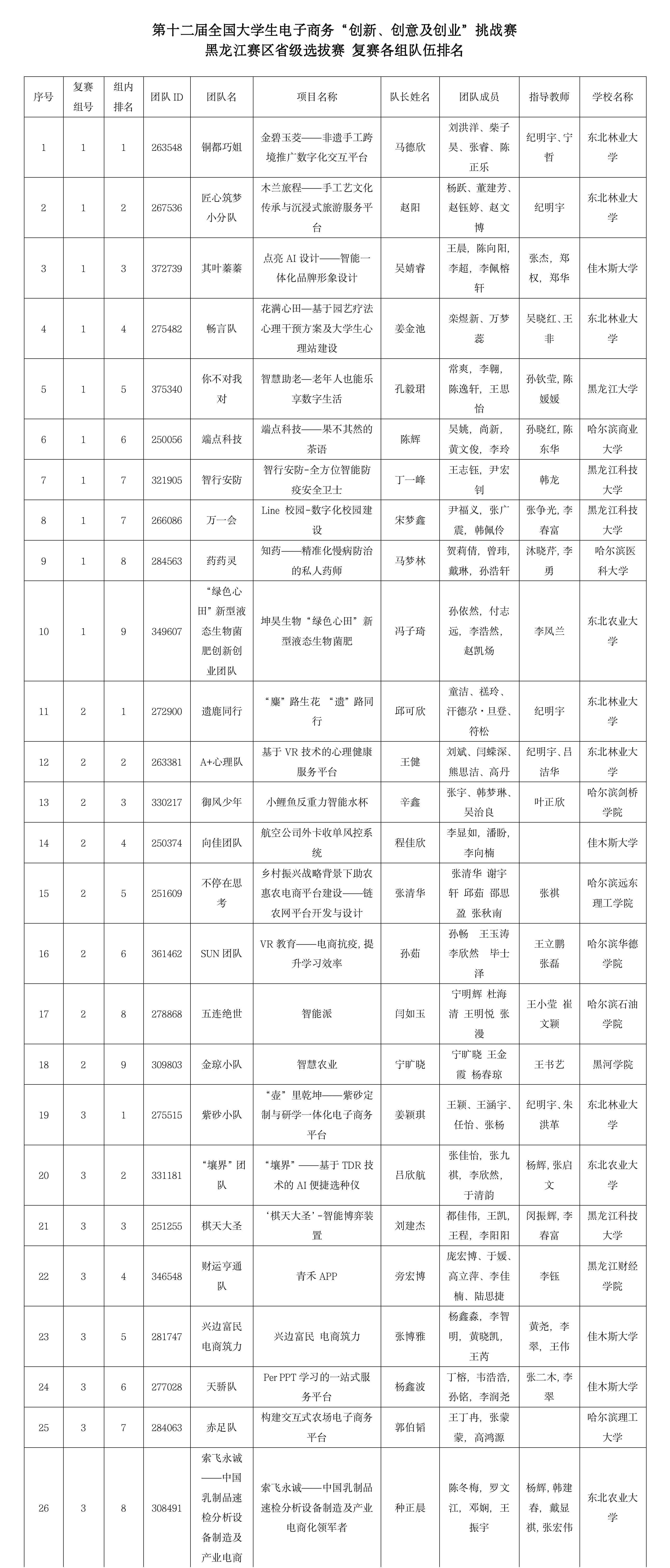 附:第十二届全国老员工电子商务“创新、创意及创业”挑战赛黑龙江赛区省级选拔赛队伍排名