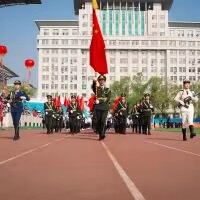 方阵检阅完毕后,举行了庄严而又隆重的升旗仪式,全体师生面向国旗肃立致礼。伴随着激昂的《义勇军进行曲》,师生们注视着五星红旗冉冉升起,在熠熠晨光中迎风飘扬。