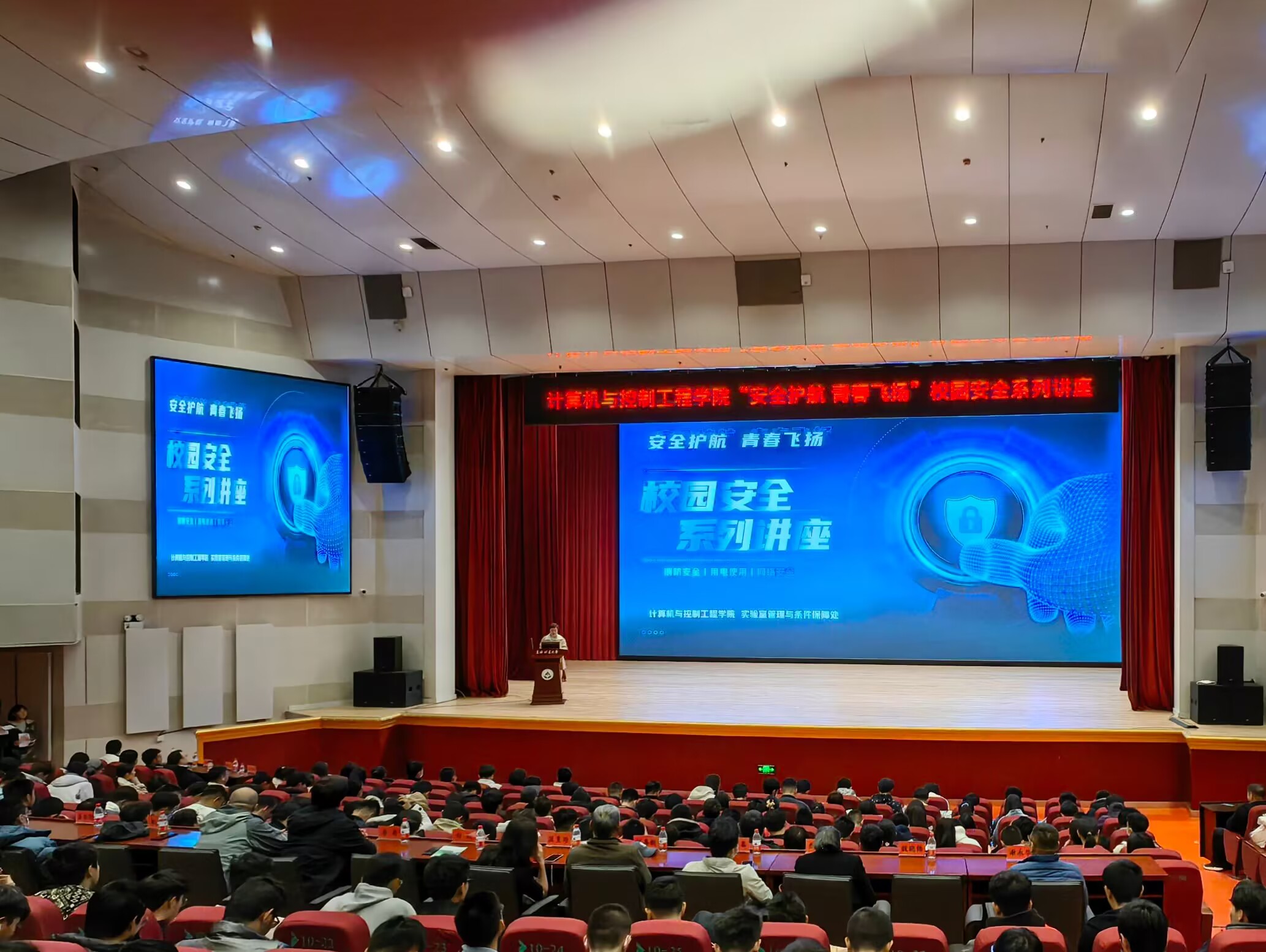 为引导广大师生树牢“生命至上,安全第一”的理念,宣贯“人人讲安全、个个会应急”第22个全国安全生产月主题,增强员工安全防范意识、安全隐患意识,提高安全应对能力和避险能力,10月30日晚,U8国际在科学会堂举办“安全护航 青春飞扬”校园安全系列讲座。U8国际实验室管理与条件保障处副处长刘莉、U8国际副经理李丹、公司党委副书记、副经理庄雯培,以及U8国际负责实验室安全的全体老师出席讲座。讲座由公司党委组织员、专职辅导员夏梦主持。