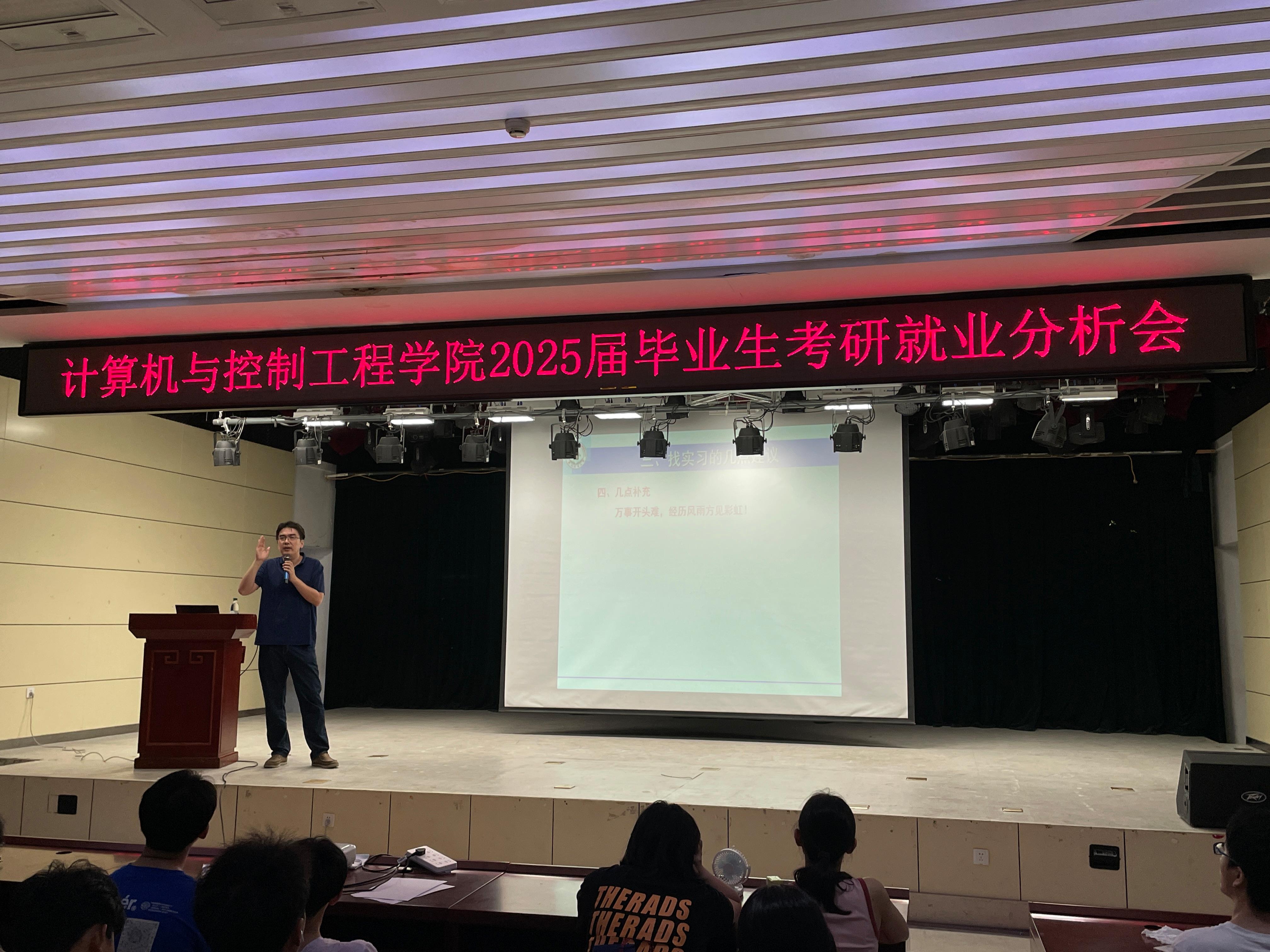 会上,李丹就当下的就业形势和实习案例为同学们进行解读,为员工未来就业方向进行了合理的规划。他强调,同学们要做好简历这块“敲门砖”,并提醒同学们要抓住实习机会。实习是提升自身能力和积累工作经验的重要途径,通过实习可以更加深入地了解行业和企业,要找出自身的优势和不足,进一步明确自己的职业方向和定位,为自己的未来就业之路打下坚实的基础。