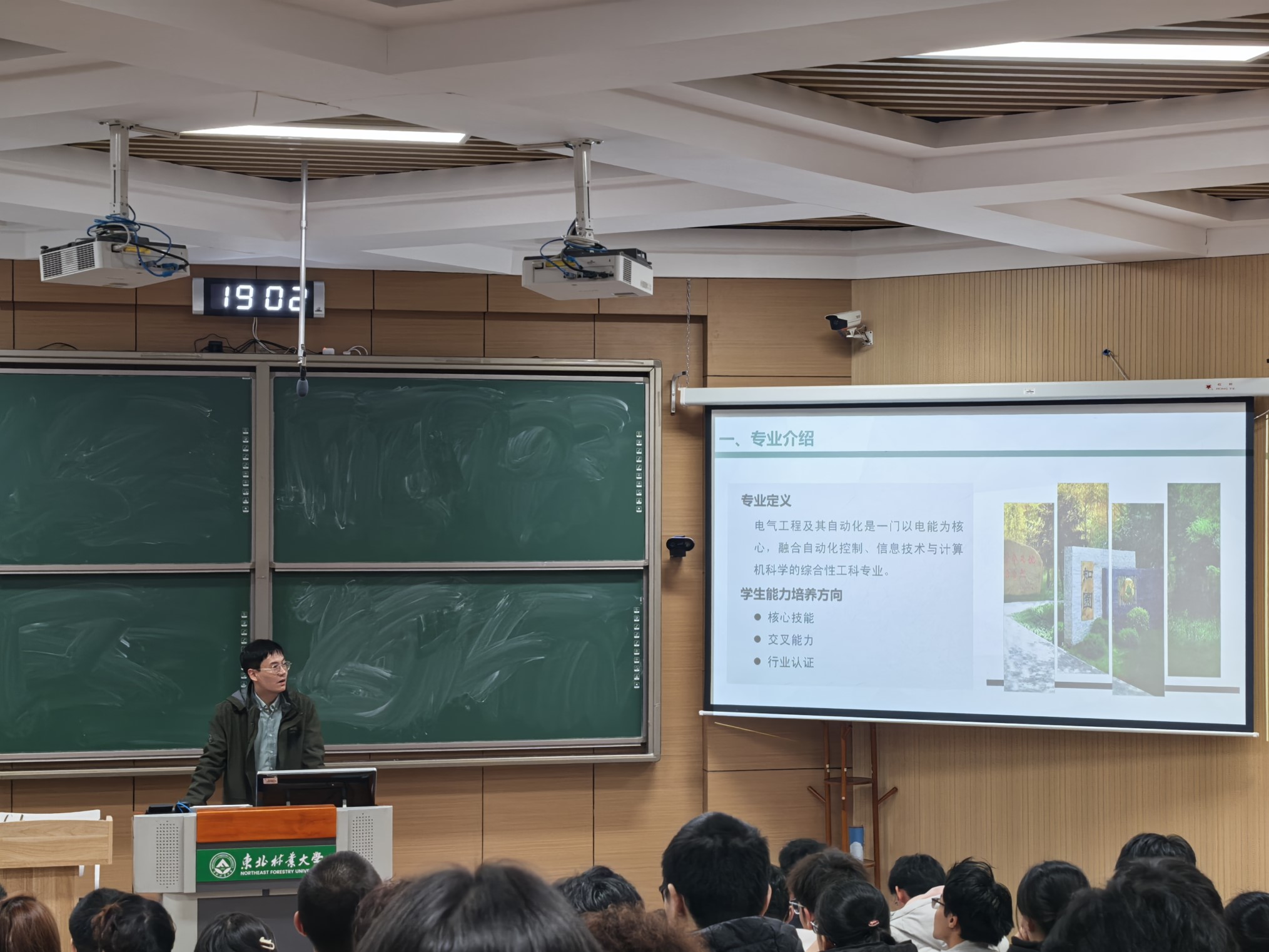 专业介绍会由2024级本科生辅导员王思琦主持,邀请电气工程及其自动化专业副主任李振杰围绕公司政策以及专业主要研究方向为员工进行讲解,旨在帮助大一员工深入了解专业特点,结合自身兴趣和未来方向做出合理规划和选择。李振杰老师从核心课程、培养目标、就业前景三个方面对专业进行了全面介绍。他指出,本专业的理论与实践教学体系能够帮助同学们构建较为完善的知识体系,掌握解决复杂问题的专业技能。在就业前景方面,李振杰老师强调电气工程及其自动化专业就业前景广阔,毕业后可进入国家电网、电气设备企业,也能从事科研、教学工作。他建议,同学们要选择自己感兴趣的专业方向,这样才能在学习过程中学有所成、学有所乐。