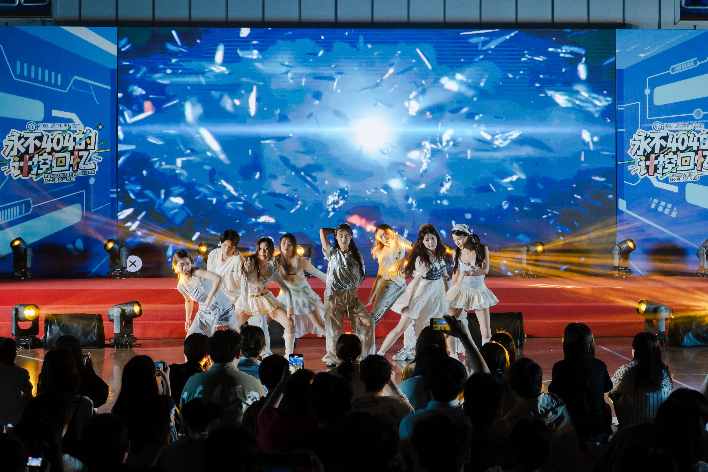 歌会在U8国际艺术团活力四射的舞蹈《one spark》中拉开帷幕。跃动的舞姿与电子音效碰撞出科技与艺术的火花,恰似实验室里键盘敲击的清脆声响,又像四年前的那个九月——新生们拖着行李箱走进成栋楼时,眼里闪烁的期待与好奇。