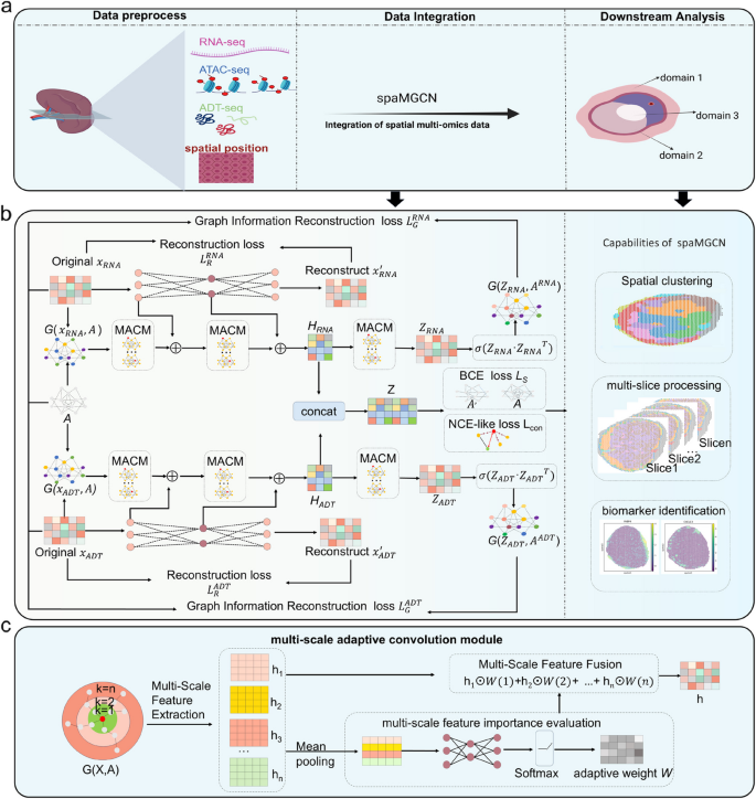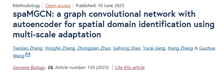 近日,公司U8国际生物信息学实验室章天骄副教授团队在生物组织空间域识别领域取得重要突破,提出了一种将自编码器与多尺度自适应图卷积网络(MACM)结合,通过动态平衡spot属性特征和空间邻域结构信息进行空间域识别的新方法spaMGCN。相关成果以“spaMGCN: a graph convolutional network with autoencoder for spatial domain identification using multi-scale adaptation” 为题发表于Genome Biology(中科院1区TOP期刊,影响因子9.4)期刊上。