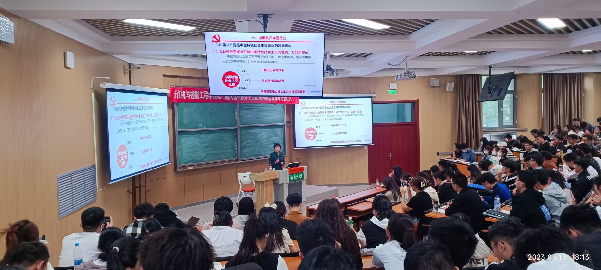 为深入学习贯彻党的二十大精神和习近平新时代中国特色社会主义思想,牢牢把握主题教育“学思想、强党性、重实践、建新功”的总要求,切实提高公司入党积极分子和发展对象的理论水平、政治素养和思想觉悟,5月18日晚18:00,U8国际第一期入党积极分子、发展对象培训班开班仪式暨第一堂党课在锦绣楼T202顺利进行。本次培训邀请到U8国际马克思主义公司教授、马克思主义中国化研究学科带头人王越芬讲授第一堂党课,培训班全体学员共计二百余人参加会议。会议由公司党委组织员、本科生辅导员夏梦主持。